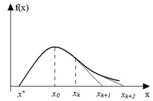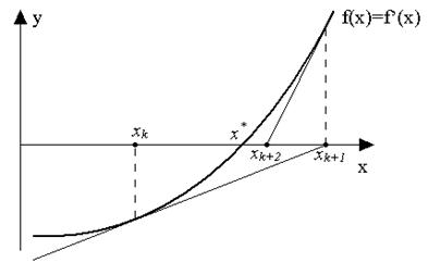 (x), и точка, в которой аппроксимирующая линейная функция обращается в нуль, принимается в качестве следующего приближения x