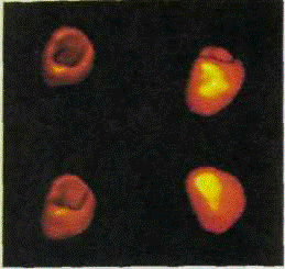 Перфузионная сцинтиграфия миокарда основана на использовании РФП, избирательно накапливающихся в интактной ткани сердечной мышцы пропорционально интенсивности коронарного кровотока. В норме определяется равномерное интенсивное накопление препарата в миокарде левого желудочка.