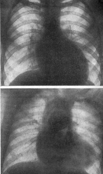 Объяснение механизма нарушения гемодинамики. В зависимости от диаметра отверстия в предсердной перегородке и степени сужения легочной артерии сброс крови может происходить слева направо или справа налево. Так, если сужение легочной артерии выражено значительно, то давление в правой половине сердца больше и сброс крови происходит справа налево. В таких случаях развивается дилятация и гипертрофия левого желудочка.