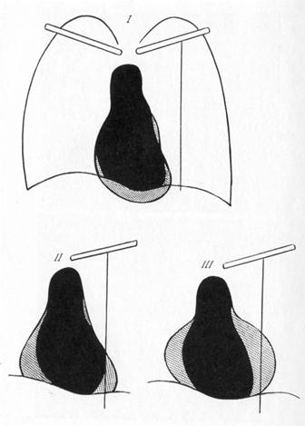 Рентгенография: сглаженность дуг, сердечная тень приобретает шаровидную форму, укорочение сосудистого пучка; расширение верхней полой вены; сердечно-диафрагмальный угол становиться более острым и глубоким.