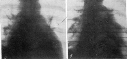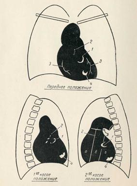 // — наличие спаек с медиастинальной плеврой обусловливает смещения тени сердца, неровность контуров или нечеткость дуг;