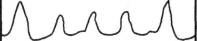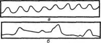 Кривые дыхания при различных эмоциональных состояниях: а — радости (17 дыханий в минуту); 6 — пассивной грусти (9 дыханий в минуту); в — активной грусти (20 дыханий в минуту); а — страха (64 дыхания в минуту); д — гнева (40 дыханий в минуту (по Дюма).