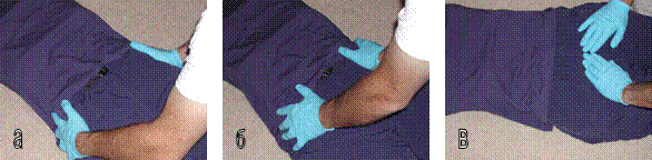 Изолированные переломы ветви лонной или седалищной костей. Общее состояние обычно вполне удовлетворительное. Жалобы на боли в области лобка (при переломе лонных костей) или в промежности (при переломе седалищных костей) на стороне повреждения. Боль усиливается при попытке движения ногой. Характерным является симптом Габая (при повороте со спины на бок пострадавший поддерживает ногу на поврежденной стороне таза голенью или стопой ноги здоровой стороны; при повороте из бокового положения на спину – сохраняет это фиксированное положение обеих ног). Сближающая нагрузка на крылья подвздошных костей, а также пальпация лобка или седалищных бугров вызывают боль в области перелома. В ряде случаев пострадавший не может оторвать от опоры прямую ногу, но приподнятую конечность удерживает самостоятельно. Однако чаще больной не может ни оторвать от опоры прямую ногу, ни удержать ее в приподнятом положении.