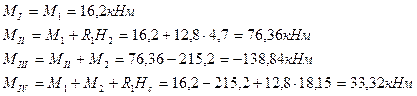 Изгибающие моменты в сечениях колонны (нумерация сечений показана на рис.7.а) равны: