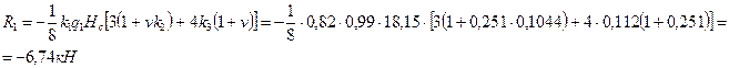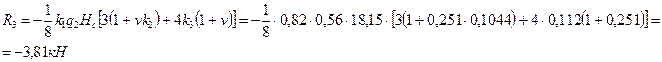 Реакция верхнего конца левой колонны по формуле Приложения 17МУ от нагрузки
