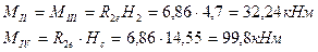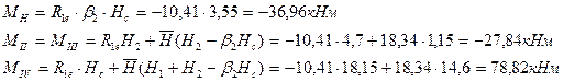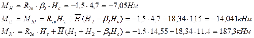 Так как рассматриваемое загружение симметрично, то усилия в колоннах определяем без учета смещения их верха. Изгибающие моменты в сечениях колонн: