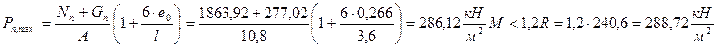 - нормативное давление на грунт при ширине фундамент