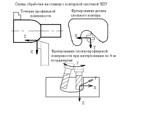 Контурное управление (рис.5.7) позволяет программировать перемещение по нескольким координатам, при функциональной связи этих координат между собой. Увязка перемещения по различным координатам позволяет программировать перемещение инструмента по определенной траектории, требуемой технологической задачей.