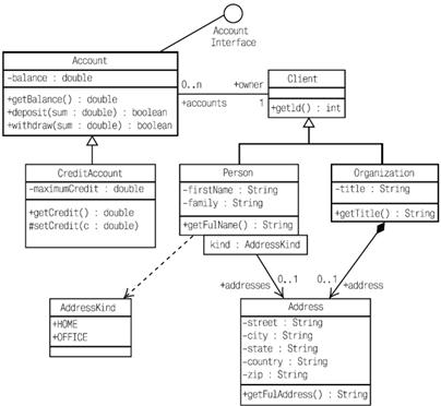 Диаграммы классов (class diagrams) показывают классы или типы сущностей системы, характеристики классов (поля и операции) и возможные связи между ни ми. Пример диаграммы классов изображен на рисунке 6.11.