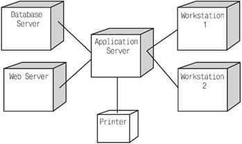 Диаграммы развертывания показывают декомпозицию системы на физические устройства различных видов — серверы, рабочие станции, терминалы, принтеры, маршрутизаторы и прочее и связи между ними, представленные различного рода сетевыми и индивидуальными соединениями.