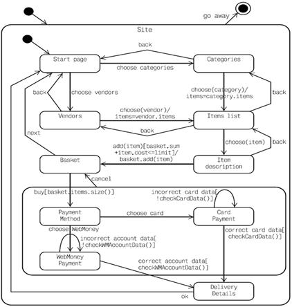 Рисунок 6.18- Пример диаграммы состояний,моделирующей сайт Интернет-магазина