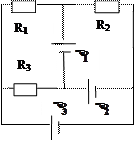 = 1,9 В, R1=45 Ом, R2= 10 Ом, R3= 10 Ом. Найдите силу тока во всех участках цепи. Внутренним сопротивлением элементов пренебречь. [I1=0,04 A, I2=0,01 A, I3=0].