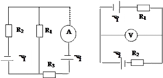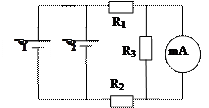 =1,5 В, внутренние сопротивления источников r1=r2=0,5 Ом, R1=R2= 2 Ом, R3= 1 Ом. Сопротивление миллиамперметра 3 Ом. Найдите показание миллиамперметра. [75 мА].
