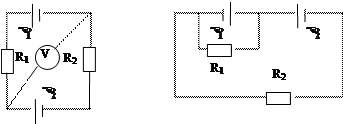 2.30. На рис. 2.5 сопротивления вольтметров равны R1=3000 Ом и R2=2000 Ом; R3=3000 Ом, R4=2000 Ом;