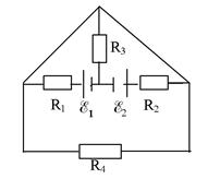 в схеме на рис. 2.16, если R1=R4=2 Ом, R2=R3= 4 Ом. Ток, текущий через сопротивление R3, равен 1А, а через сопротивление R2 ток не течёт. Внутренние сопротивления элементов r1=r2=0,5 Ом.