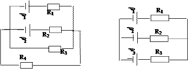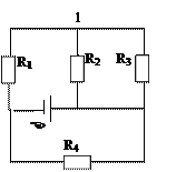 2.43. В схеме на рис. 2.18 R1=1 Ом, R2=2 Ом, R3=3 Ом, сила тока через источник равна 2А, разность потенциалов между точками 1 и 2 равна 2 В. Найдите сопротивление R4.