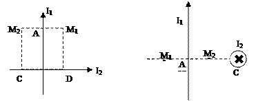 3.3. Два прямолинейных бесконечно длинных проводника расположены перпендикулярно друг к другу и находятся в одной плоскости (рис. 3.2). Найдите магнитную индукцию поля в точках М1 и М2, если I1=2 А и I2=3 А. Расстояния АМ1=АМ2= 1 см, DМ1=СМ2=2 см. [10ˉ5 Тл; 7·10ˉ5 Тл ].