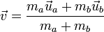 Где v это общая скорость тел, полученная после удара, ma - масса первого тела, ua - скорость первого тела до соударения. mb - масса второго тела, ub -скорость второго тела до соударения. Важно - импульсы являются величинами векторными, поэтому складываются только векторно.