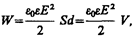 Энергия электростатического поля. Преобразуем формулу (95.4), выражающую энергию плоского конденсатора посредством зарядов и потенциалов, воспользовавшись выражением для емкости плоского конденсатора (C=0S/d) и разности потенциалов между его обкладками (=Ed. Тогда