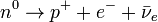 В β−-распаде слабое взаимодействие превращает нейтрон в протон, при этом испускаются электрон и электронное антинейтрино: