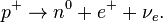В β+-распаде протон в ядре превращается в нейтрон, позитрон и нейтрино: