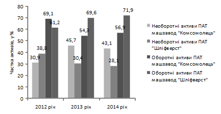 Рисунок 2 – Структура майна ПАТ машзавод «Комсомолець» і ПАТ машзавод «Шліфверст» за 2012-2014 рр. (на кінець року)
