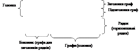 Заголовки граф таблиці починають з великої літери, а підзаголовки - з малої, якщо вони складають одне речення з заголовком.