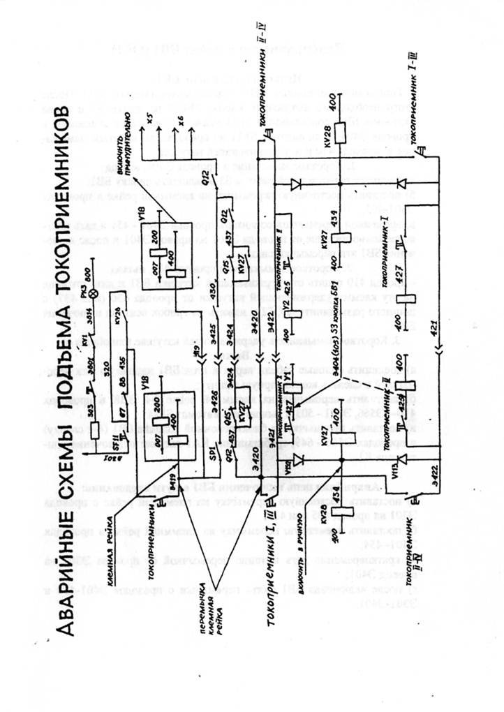 Выход из положения: на секции, на которой не поднимается токоприемник, на щитке параллельной работы S3 провод Э404 (от кнопки "БВ1" - см. рисунок на с.20) соединить перемычкой с проводом 425 (или 427) на кнопке "Токоприемник 1" (или "Токоприемник 2") и включить принудительно реле KV27 и KV28. Токоприемником управлять кнопкой "БВ1".