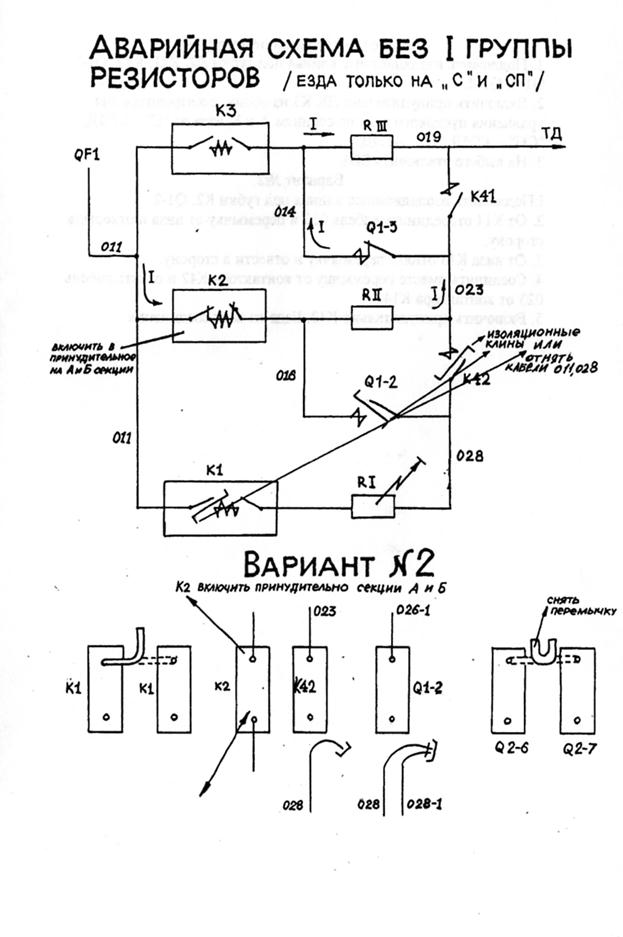 5. Езда на "П" - необходимо от верхнего кронштейна к.э. Q2-6, Q2-7 снять перемычку (1-2, 4-3 ТЭД).