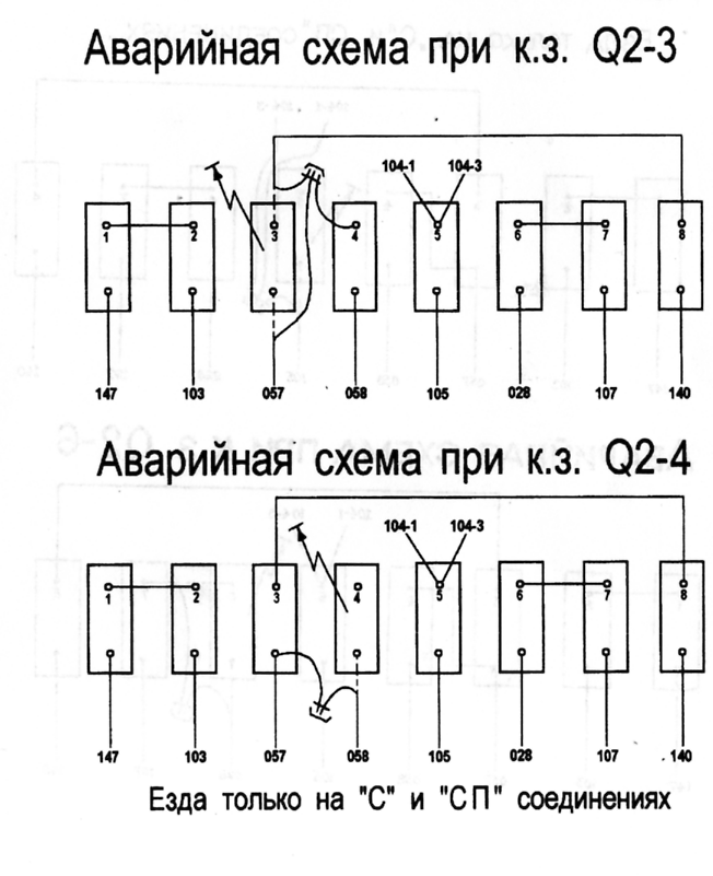 -- отсоединить подходящие и отходящие кабели и соединить их помимо контакторного элемента, езда на "С" и "СП" - соединениях.
