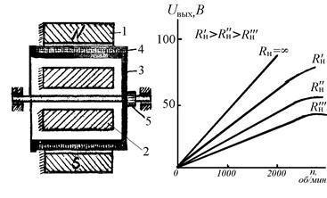 Рисунок 8.1 – Конструкция тахогенератора постоянного тока, зависимость