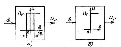 а – с зоной нечувствительности 2В; б – идеального (2 В = 0)