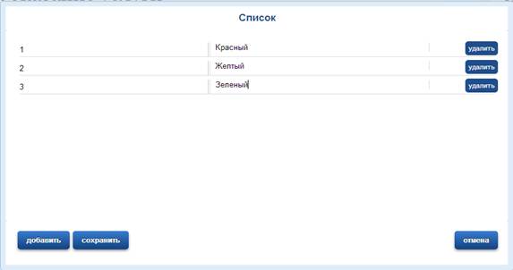 Список – используется для ввода значений радио, указывается код и текстовое значение (Рис. 17)