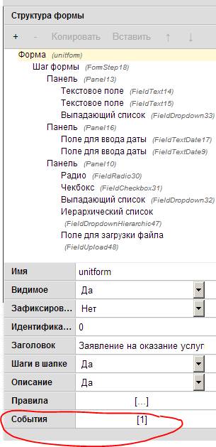 Для формирования xml необходимо указать Событие для формы (Рис.26).