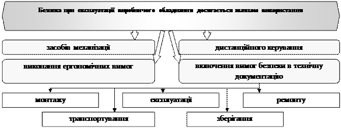 Безопасность производственного оснащения - свойство производственного оснащения отвечать требованиям безопасности работы при выполнении технологических функций при условиях, которые установленные нормативно-технической документацией.