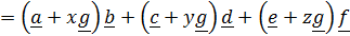 льшего числа диад, т. е. правила (1–5) выводят нас за пределы множества диад (множество незамкнутое). Нетрудно убедиться, что минимальной неупрощаемой в общем случае совокупностью, к которой может быть приведена сумма любого числа диад, является сумма трех диад. Действительно, сумма, например, четырех диад в силу линейной зависимости в трехмерном пространстве четырех и более векторов записывается в виде суммы трех диад: