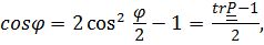 В каком бы виде ни был записан тензор поворота – через направляющие косинусы или в виде композиции поворотов, угол поворота и ось поворота определяются из выражений для следа и векторного инварианта тензора поворота: