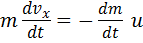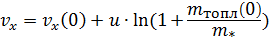 ракета движется поступательно и относительная скорость истечения постоянна. Проецируя (5.6a) на ось Х, с учетом