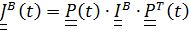 , вычисляемого в актуальном положении твердого тела, ясно, что тензор инерции зависит от времени. Разложим вектор