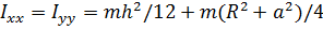 Моменты инерции относительно центральных осей вычисляются с помощью теоремы Гюйгенса – Штейнера (