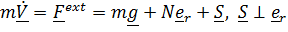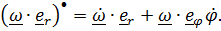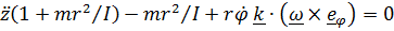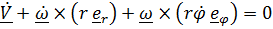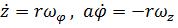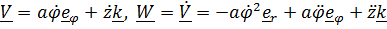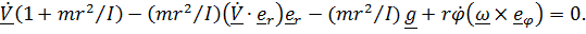 Скорость и ускорение центра шарика в цилиндрической системе: