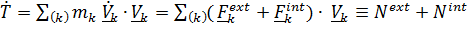 Скорость изменения кинетической энергии равна мощности внешних и внутренних воздействий: