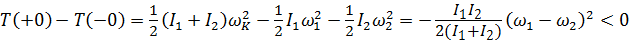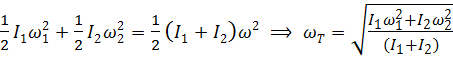 Разумеется, правильным результатом является формула (5.48). Найдем разность кинетических энергий после и до сцепления. Опуская несложные выкладки, получим: