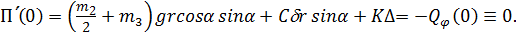 в положении равновесия, связывает статические деформации. Слагаемые в фигурной скобке в (3) соответствуют «кинематическому» подходу при вычислении перемещений для потенциальной энергии, при котором связь между перемещениями получают «интегрированием» связей между скоростями в момент прохождения системой положения равновесия, т. е. просто убирают знаки производных по времени. В данном примере это означает, что из выражения