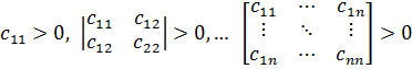 Из линейной алгебры известен критерий Сильвестра: Необходимым и достаточным условием положительной определенности квадратичной формы является положительность главных диагональных миноров и определителя матрицы, составленной из ее коэффициентов: