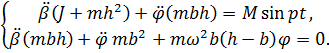 , второе уравнение описывает свободные колебания маятника в поле центробежных сил: