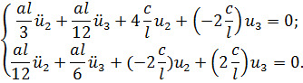 и, приравнивая нулю определитель, получим частотное уравнение: