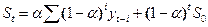 Используя рекуррентное соотношение для всех уровней ряда, начиная с первого и заканчивая моментом уровня t, можно получить сглаженное данным методом значение уровня ряда, которое является взвешенной средней всех предшествующих уровней:
