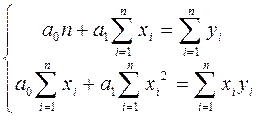Система нормальных уравнений для нахождения параметра линейной парной регрессии методом наименьших квадратов