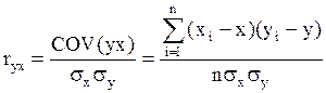 Коэффициент корреляции принимает значение от -1 до +1. Положительное значение коэффициента свидетельствует о наличии прямой связи, отрицательное значение — обратной. Если rух = ±1, корреляционная связь представляется линейной функциональной зависимостью. При rух = 0 линейная корреляционная связь отсутствует.